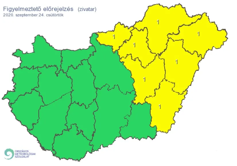 Az Országos Meteorológia Szolgálat figyelmeztető előrejelzése szerint hét megyében várhatók zivatarok. Elsődleges veszélyforrást a villámlás jelent, emellett esetenként szélerősödés, jégeső előfordulhat!