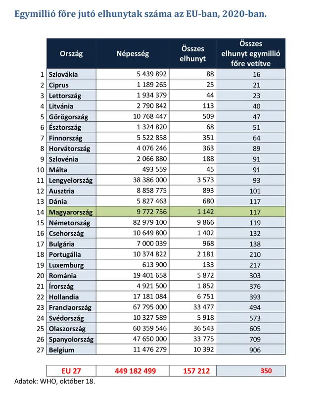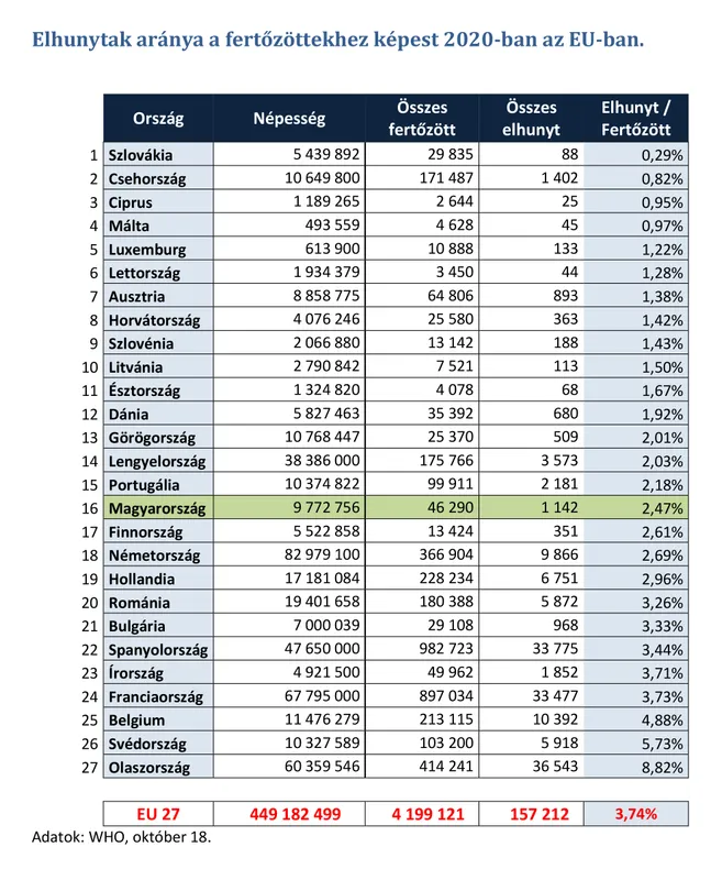 Ez a szám az, amely a leginkább képet ad arról, hogy egy adott tagállam mennyire hatékonyan tud védekezni a vírussal szemben, mennyire tudta megvédeni állampolgárai életét.
