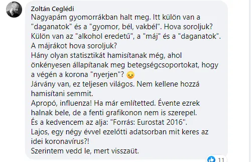 Az MSZP országgyűlési képviselője most egy olyan grafikont tett közzé a Facebookon, amelyen a koronavírus-fertőzés az egyik vezető halálokként volt feltüntetve – szúrta ki a Mandiner. A bejegyzésben olvasható adatok egyértelműen hamis voltát a baloldali kötődésű politológus, Czeglédy Zoltán – aki jelenleg a Momentumnak dolgozik tanácsadóként – sem hagyta szó nélkül.