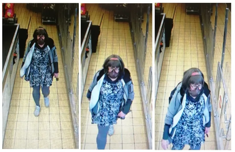 Az ismeretlen nő 25-40 év közötti, molett testalkatú. A bűncselekmény elkövetésekor szürke szoknyát, szürke kabátot, szürke leggings-et, fehér cipőt, rózsaszín hajpántot, sötét keretes szemüveget és fekete hátizsákot viselt.