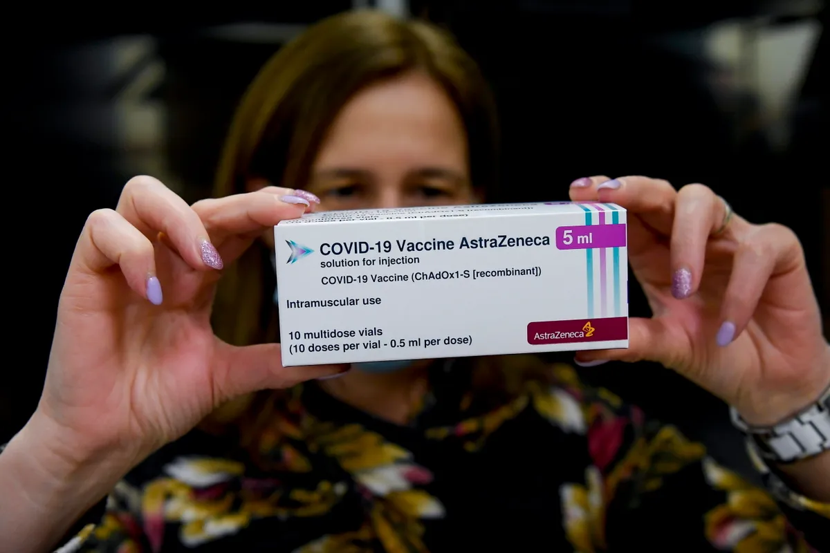 Az AstraZeneca brit-svéd gyógyszergyár és az Oxfordi Egyetem közös fejlesztésű, koronavírus elleni vakcinját mutatja egy munkatárs Debrecenben, a Hajdú-Bihar Megyei Kormányhivatal Népegészségügyi Főosztályán 2021. február 9-én.