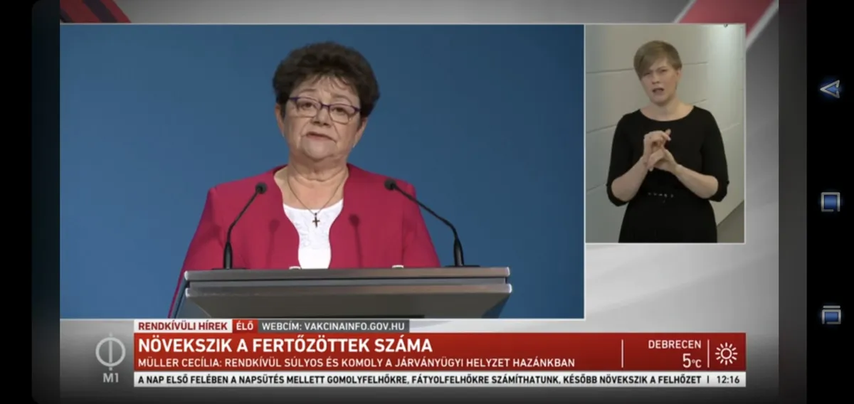 Müller Cecília a romló járványügyi adatok miatt nyomatékosan arra kért mindenkit, hogy tartsa be a maszkviselési és távolságtartási szabályokat, valamint fogadja el a neki felajánlott oltást.