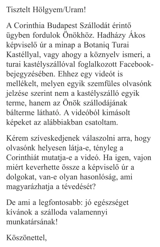 A Bors ügyeletes szerkesztője levélben fordult a budapesti szállodához, kérve, erősítsék meg ők is, hogy hazugság, amit a videóval Hadházy állít. Íme a levél és a Corinthia Hotel válasza: