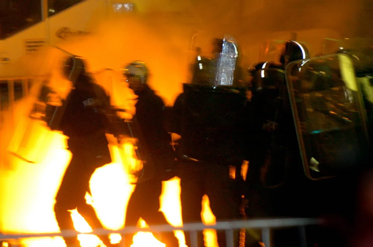 Molotov-koktélt dobnak a tüntetõk a rendõrökre a Rákóczi úton.