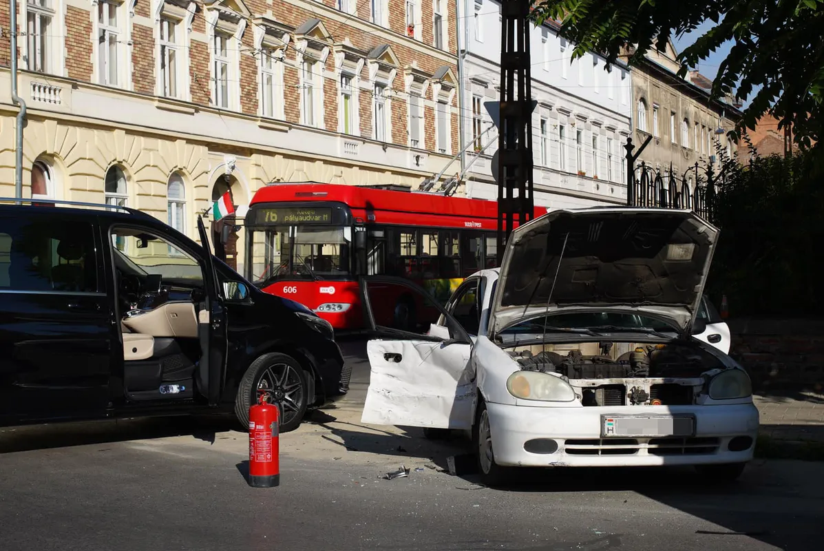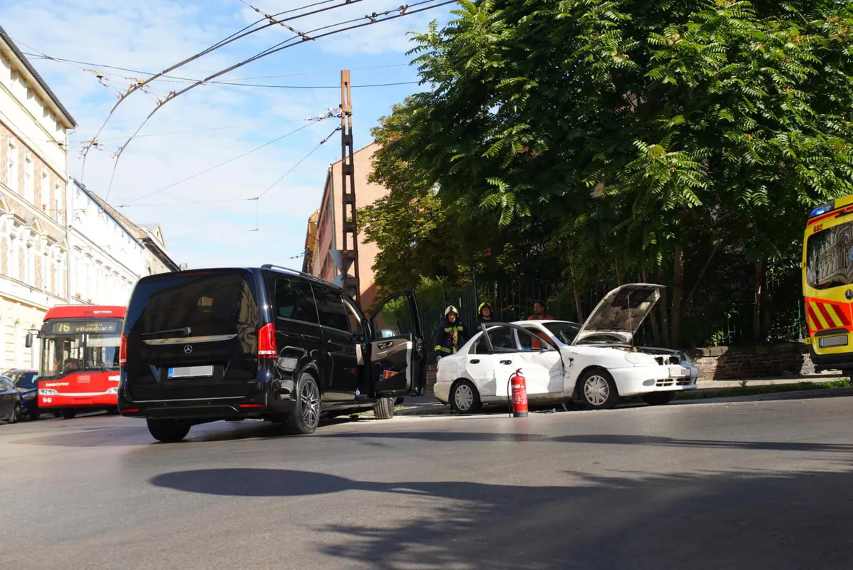 Baleset történt a hetedik kerületben, ahol két autó ütközött össze a Dohány utca és az Izabella utca kereszteződésénél.