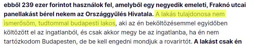 „ A lakás tulajdonosa nem ismerősöm, tudtommal budapesti lakos.”