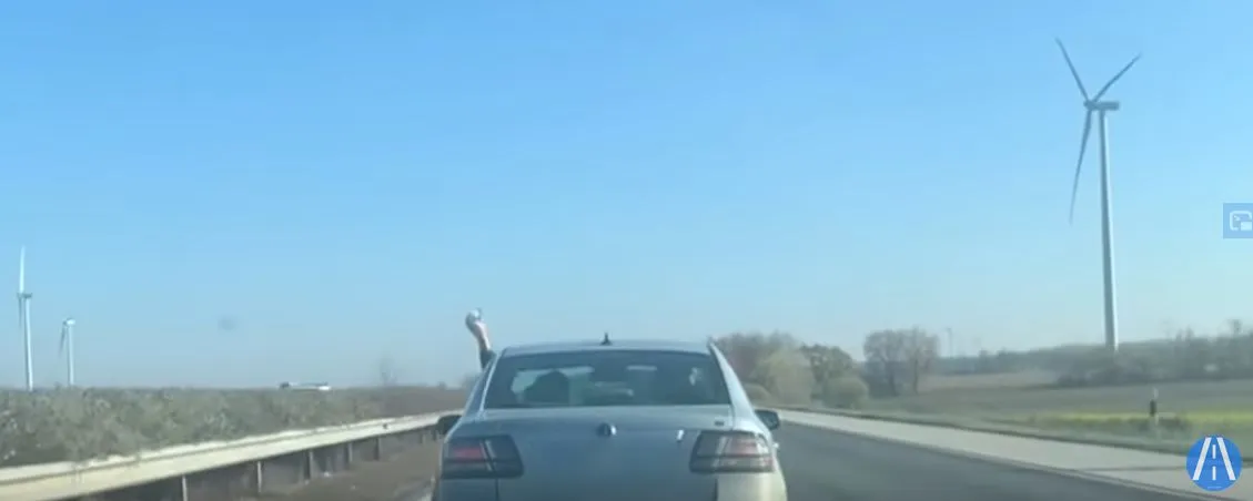 A jármű vezetője nemes egyszerűséggel lehúzza az ablakot és egy doboz útidőt locsol a mögötte haladó autó szélvédőjére. Ugye mondanunk sem kell, hogy akár tragédia is lehetett volna a pitiáner és oktalan bosszúból, ha a mögötte haladó jármű sofőrje megijed és elrántja a kormányt?!