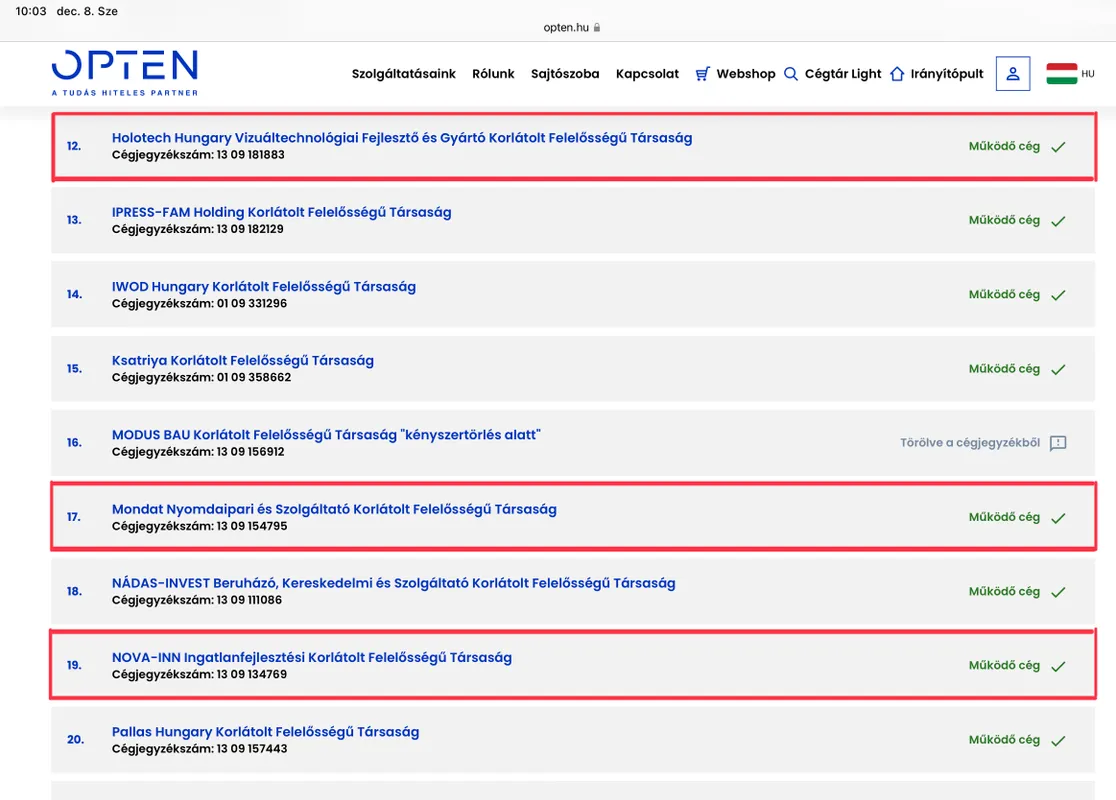Kiderült: a NOVA-INN Kft., a Mondat Kft., és a Holotech Kft. ugyanarra a váci címre van bejegyezve, ahol a Pannónia Nyomda Kft. megnyerte a csaknem 70 millió forintos EU-s támogatást.
