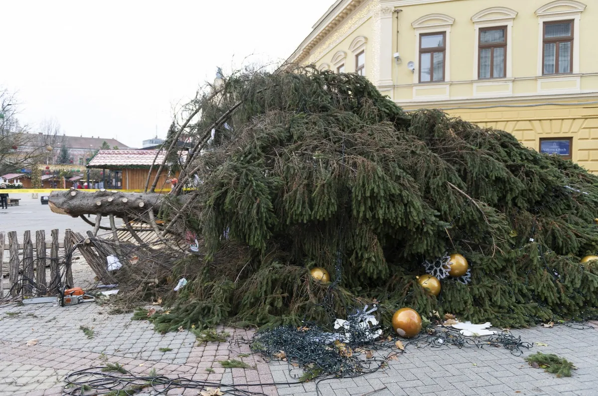 A Met-net számolt be arról, hogy Baján is kidőlt a karácsonyfa.