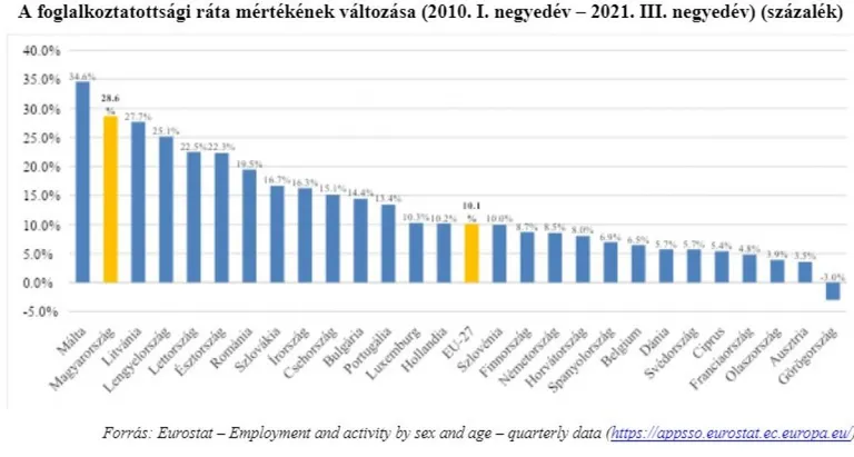 Az Eurostat adatai szerint Magyarországon a lakosság nettó pénzügyi vagyona 2010 első negyedéve és 2021 harmadik negyedéve között háromszorosára nőtt, 18,8 ezer milliárd forintról 59,9 ezer milliárd forintra. A lakosság teljes (bruttó, kötelezettségekkel nem csökkentett) pénzügyi vagyona ezalatt 30 ezer milliárd forintról 72,9 ezer milliárd forintra emelkedett.Ez az eredmény Európában az egyik legjobb, hiszen a magyar lakosság nettó vagyona az Európai Unión belül a hatodik legmagasabb mértékben emelkedett.