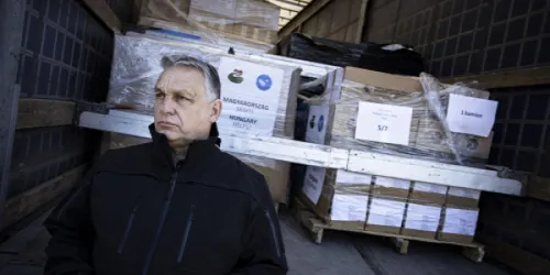 Orbán Viktor a közösségi oldalára feltöltött videóban Záhonyból, a magyar-ukrán határról jelentkezett be, ahol elmondta: most indították útnak a hatalmas magyar segélyszállítmány következő konvoját. Hozzátette: öt kamionnyi szállítmányt küldenek, élelmiszereket, iparcikkeket - gyerekeknek különösképpen -, valamint kötszereket és gyógyszereket.