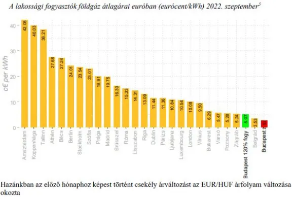 A Magyar Energetikai és Közmű-szabályozási Hivatal európai földgázárakat összehasonlító vizsgálata szerint szeptemberben a magyar lakossági fogyasztók számára a földgáz ára 2,53 euerócent/kWh volt, Berlinben pedig 24,01 eurócent/kWh. Vagyis a német fogyasztóknak jelenleg még a magyar ár kilencszeresét kell fizetni a gázért, és a márciustól is még a magyar ár több mint ötszörösét szedik be tőlük a szolgátatók.