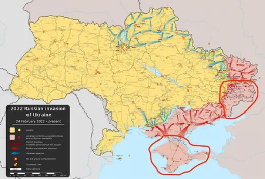 „Az elmúlt napokban az oroszok kivonultak Herszonból, amelyet az ukránok vissza is foglaltak. A lenti térképen látható, hogy mekkora területet tartanak még ellenőrzésük alatt Ukrajnában az oroszok. Piros vonallal karikáztam be azokat a területeket, amelyeket már 2014-ben megszereztek (Doneckben és Luhanszkban hivatalosan az oroszbarát szeparatisták), a többit az elmúlt 9 hónapban. Becslések szerint ez összesen nagyjából 110 ezer négyzetkilométer. Összehasonlításképp: Magyarország területe 93 ezer négyzetkilométer.”