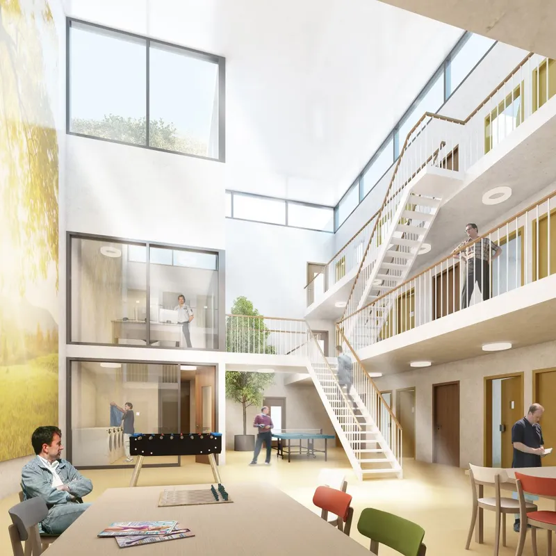 A kiszolgáló épületekben helyet kaptak relaxációs zónák, szociális műhelyek, sportpályák, játszós és terápiás szobák és egy könyvtár. Sőt, egy folyamatosan változó tárlatokat jelentkező múzeum is, melyet bármikor meglátogathatnak a rabok.