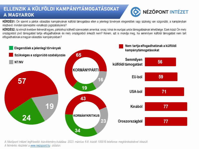 POLITIKAI HOVATARTOZÁS NÉLKÜL AZ AZ URALKODÓ VÉLEMÉNYE A MAGYAROKNAK, HOGY A KÜLFÖLDI KAMPÁNYFINANSZÍROZÁS ELFOGADHATATLAN.