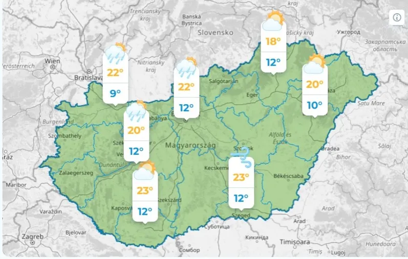 Csalódniuk kell azoknak, akik felhőtlen jót időt szerettek volna a hétvégén. Bér a hőmérséklet sokszor átlépi a 20 fokot, sok helyen csapadékkal kell számolni. Míg az ország egyes részein akár 25 fok is lehet, addig lesz olyan régió, ahol a hőmérő higanyszála a maximum 18 fok lesz - írja a Köpönyeg.