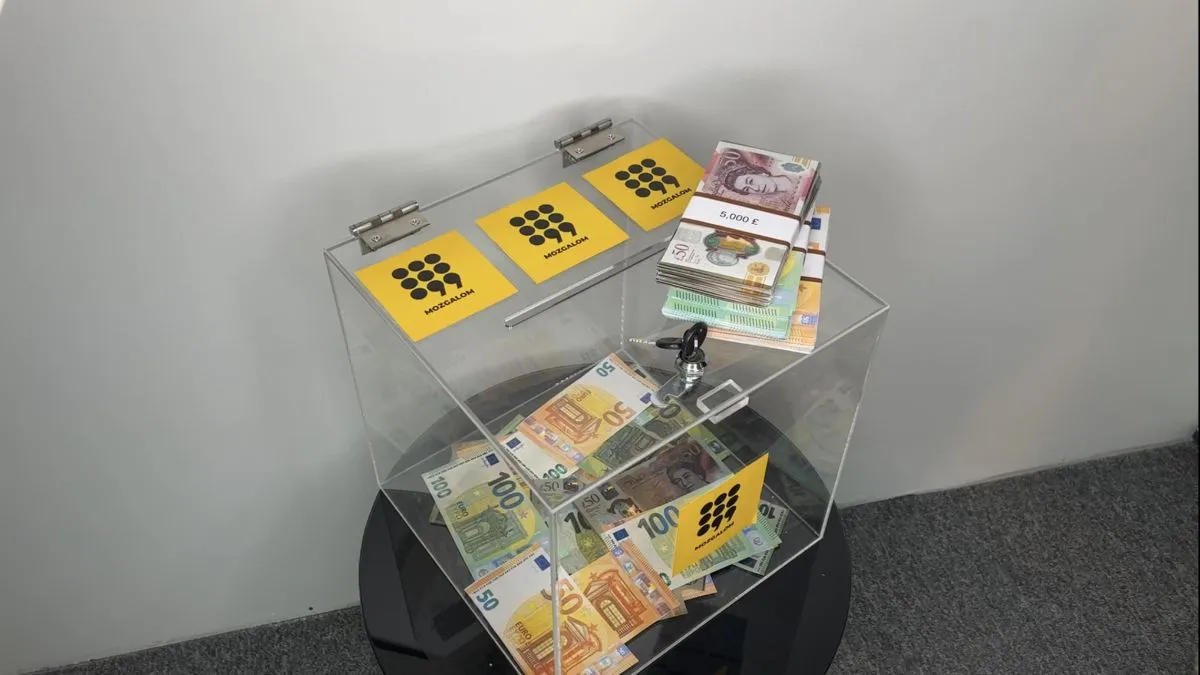 Fizikai képtelenség a bankjegykötegeket áttuszkolni a láda nyílásán és ennyi pénz nem fér el benne!