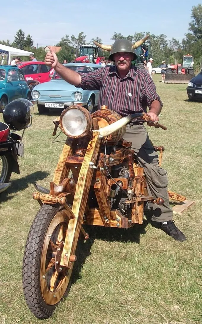 Húsz éve kezdődött. Azóta a férfi minden szabadidejét a különleges alkotások építésére szentelte. Az elmúlt húsz évben több tucatnyi jármű került ki a keze közül: motor, autó, még traktor is. A motor, a csavarok a gumik és a szíjak kivételével mindent fából készített el, még a váltót is. Most épp egy dragster megépítésével foglalatoskodott, de sajnos ez már sohasem fog elkészülni. Teveinek megvalósításába beleszólt a sors. Hatalmas űrt hagyott maga után. Az egész falu döbbenten áll a hír előtt, hogy elment a kivételes ember. Mindenki nagyon szerette. A gyerekek rajongással fogadták alkotásait, mert azonkívül, hogy nagyon szépen megmunkált darab volt mindegyik, még utazni is élmény volt rajtuk. Kedvence egy faautó volt, amit 2013-ban készített el. A faautó lelke egy 126-os Polski Fiat motor, ami 15 km/óra sebességgel repít. Négy hónap és 15 szál fenyőpadló kellett a megépítéséhez. Alkotásaival rendszeresen részt vett falunapokon, és autós találkozókon, ahol a csodájára jártak.
