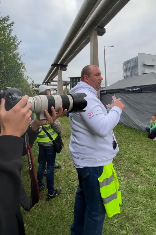 A letartóztatott cigarettacsempész vezető szervezőként fontos szerepet játszott az MTVA előtti demonstrációban. A háttérből irányított, szervezett, ő látta el például "láthatósági mellénnyel" Magyar Péter médiabrigádját.