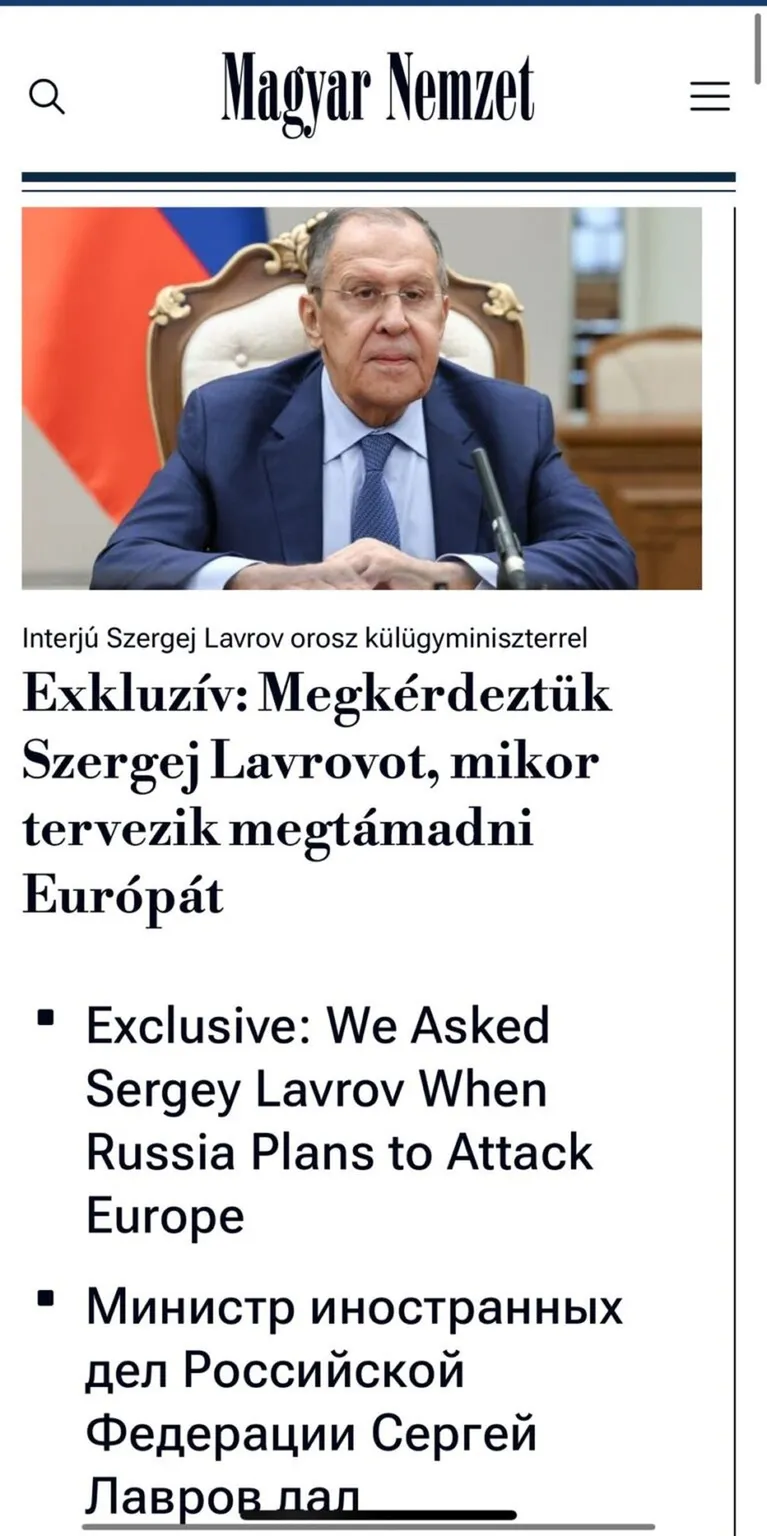 Exkluzív interjút adott Szergej Lavrov orosz külügyminiszter a Magyar Nemzetnek, amelyben az orosz–ukrán háború mellett a magyar–orosz kétoldalú kapcsolatokat is értékelte. Az orosz tárcavezető kifejtette, nem lehetséges a fenntartható rendezés „a konfliktus kiváltó okainak elhárítása nélkül”.