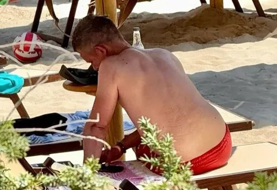 A Bors olvasói azt látták, hogy órákon át ül a tengerparton egy nyugágyon és sokszor meglehetősen hangosan és ingerülten telefonál.