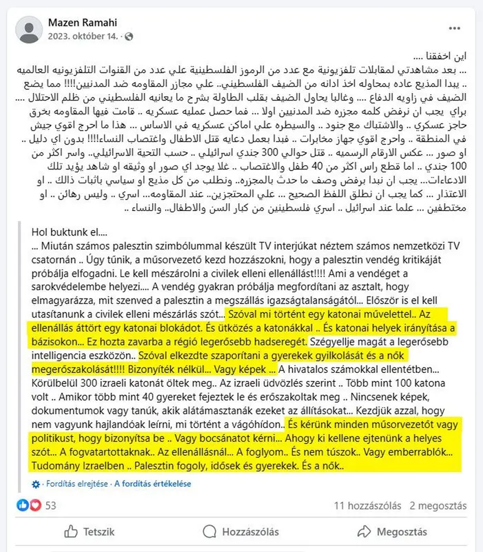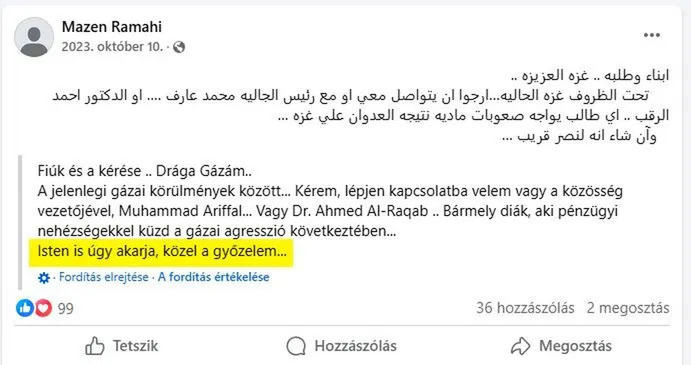 A Hotel Prestige tulajdonosa, Gerendai szoros üzlettársa durván és szélsőségesen támogatja a HAMASZ terrorizmust. Amikor 2023 október 7-én a terroristák betörtek Izraelbe és kegyetlenül lemészárolták több település lakóit, így örvendezett egy nyilvános posztjában: " ISTEN IS ÚGY AKARJA KÖZEL A GYŐZELEM!" Közben folyamatosan tagadni próbálta a terroristák kegyetlenkedését, gyerekek lefejezését, nők százainak megerőszakolását, túszok elrablását.