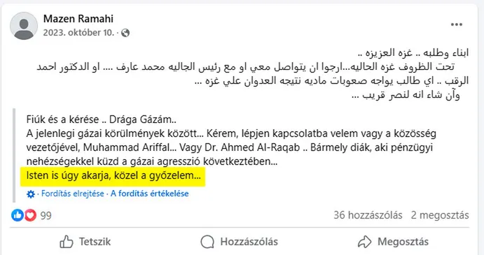 A RIPOST bizonyítékokat talált az arab "üzlettárs" terrorizmust, zsidó emberek, köztük gyerekek lemészárlását, nők megerőszakolását, megcsonkítását, túszok ejtését támogató politikai tevékenységére. Mazen-Al-Ramahi nemcsak budapesti luxusszállodák tulajdonosa, gazdag üzletember, de szélsőséges palesztin politikai szervezetek vezető tisztviselője is. 2023 októberében, miután a HAMASZ brutálisan megtámadta Izraelt, így örvendezett: " Ha Isten úgy akarja, közel a győzelem!
