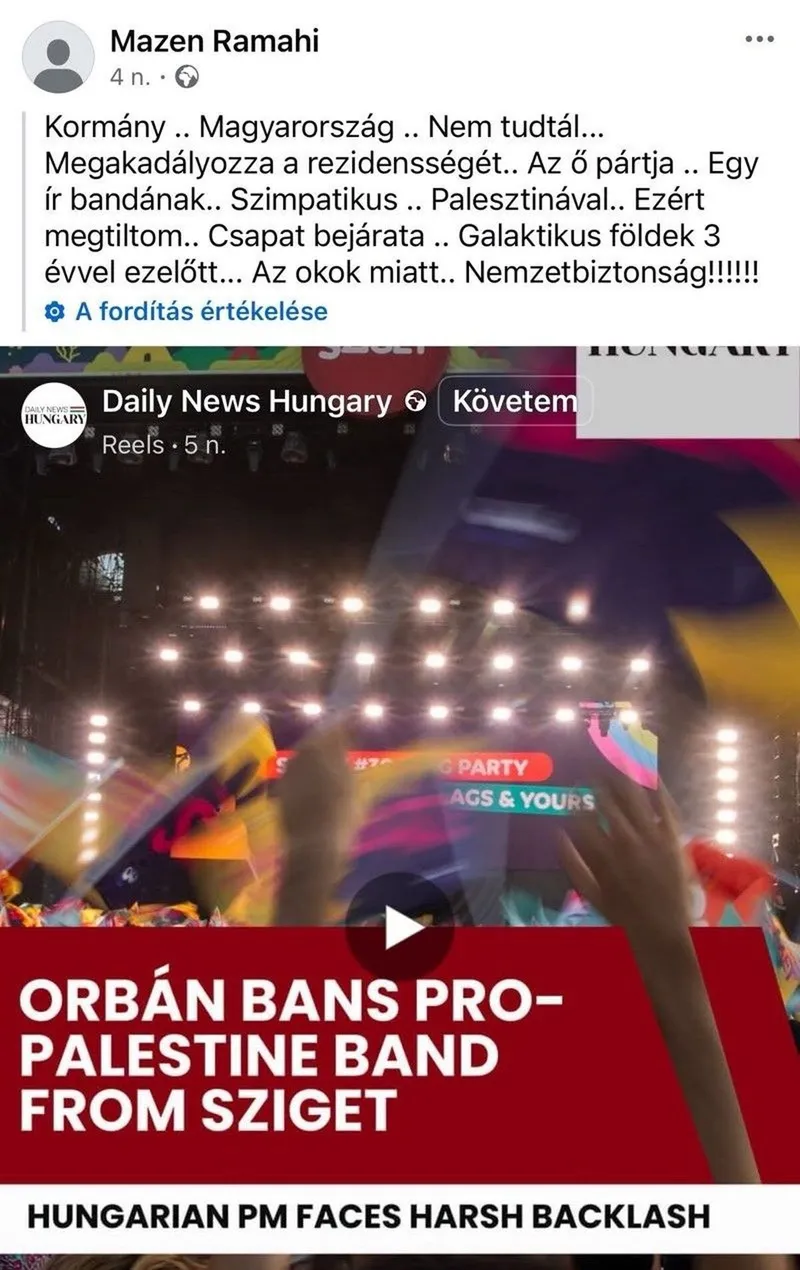 Mazel Al-Ramahi végig aktívan támogatta a HAMASZ-párti ír banda fellépését a Gerendai Károly alapította Sziget-fesztiválon.