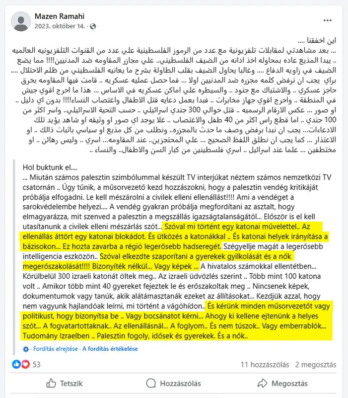 Gerendai Károly üzlettársa így üdvözölte Izrael megtámadását, több száz ember, gyerekek lemészárlását, nők megerőszakolását, a túszejtést