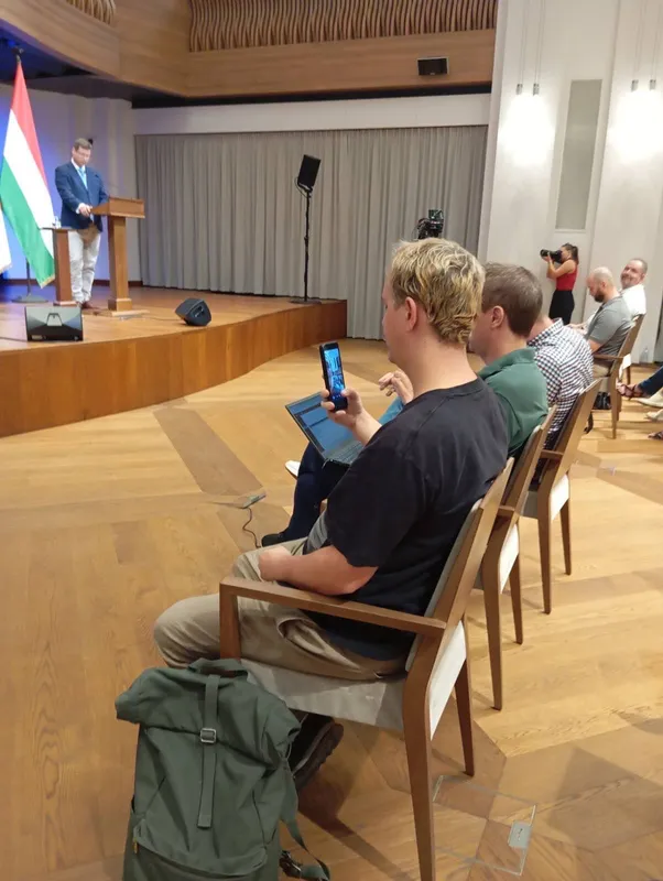 Újságírókat fotózott, laptopokba, táskákba próbált belelesni a 444 munkatársa a Kormányinfón