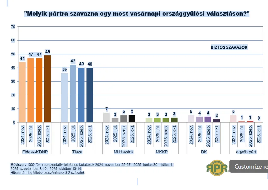 A Real-PR 93. debreceni székhelyű országos és helyi közvélemény-kutatásokkal foglalkozó cég, amely kiemelt figyelmet szentel annak, hogy a budapesti politikai vitákban a vidéki Magyarország véleménye is megjelenjen. www.realpr93.hu A közleményben szereplő közvélemény-kutatás 1000 fő telefonos megkérdezésével készült 2025. október 13. és 14. között a felnőtt társadalomra nemre, korra és lakóhelyre nézve reprezentatív mintán. A hibahatár legfeljebb +/-3,2%.