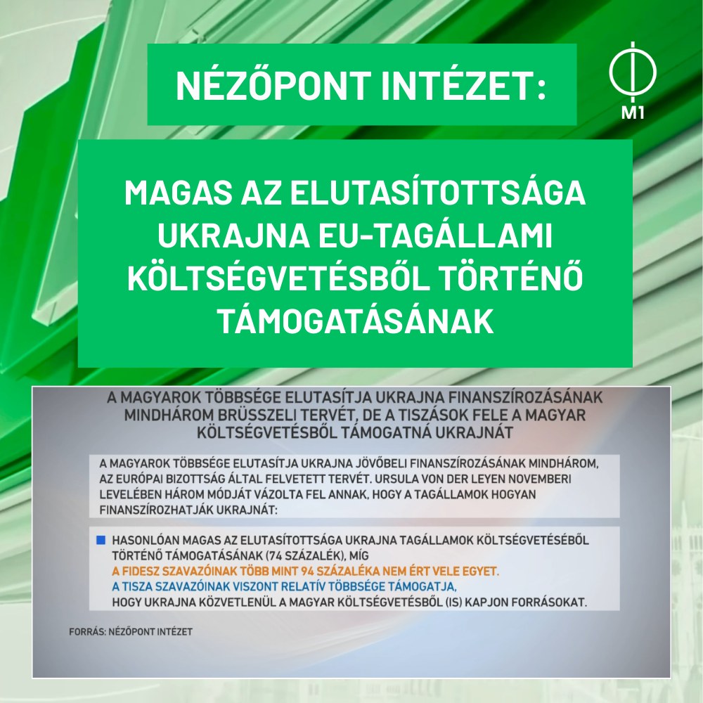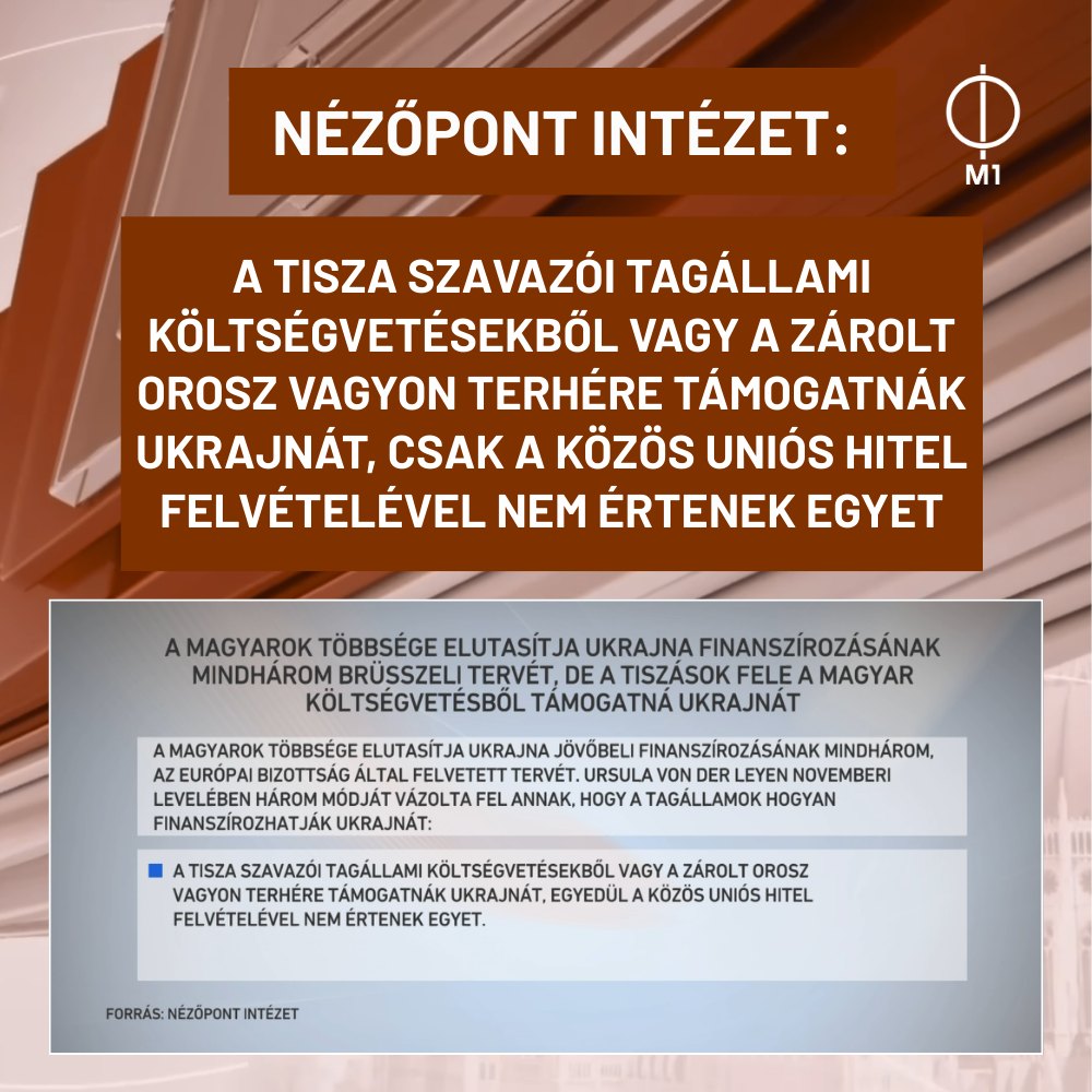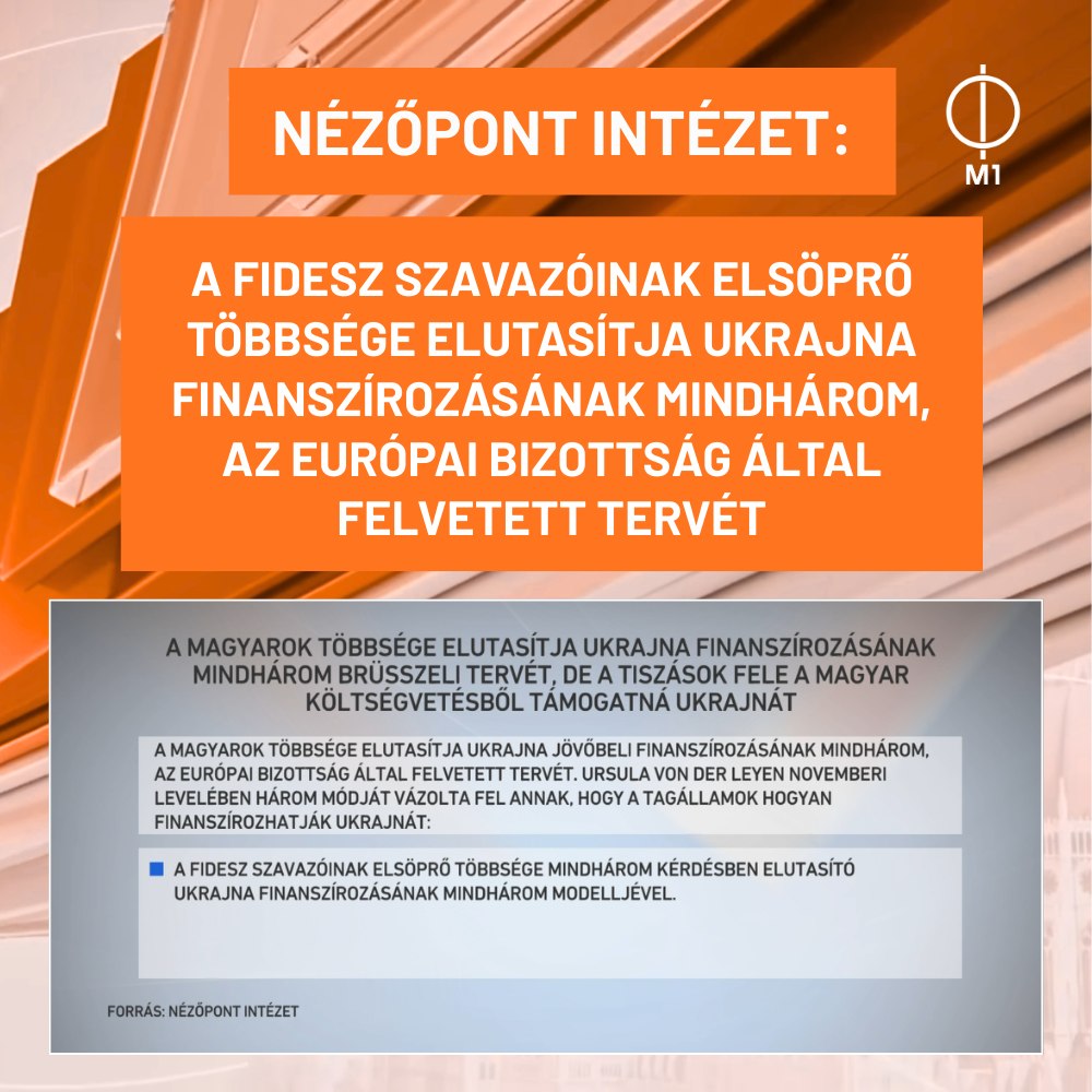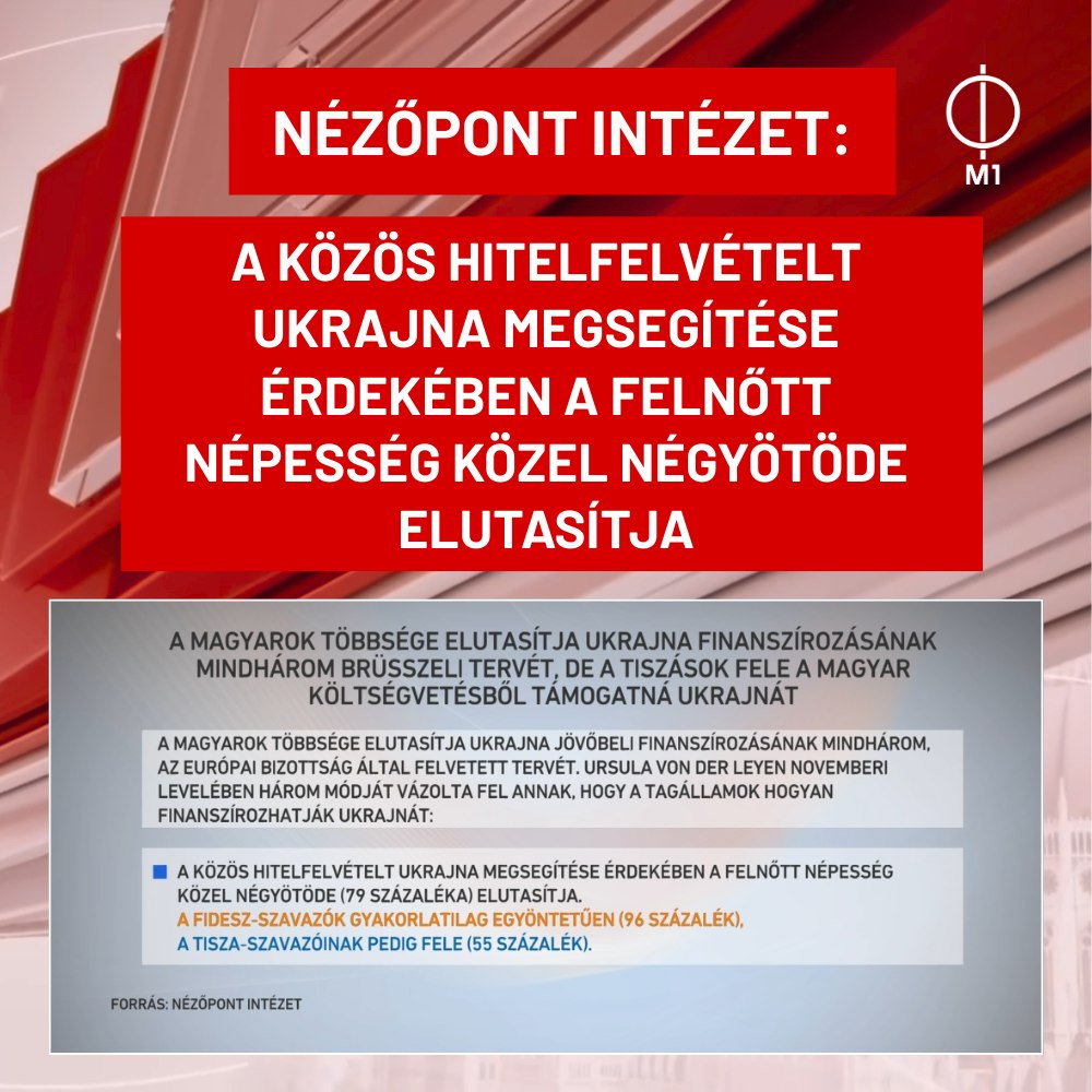 A közmédiában elsőként bemutatott kutatás eredményeit ismertető táblázatok szerint a közös hitelfelvételt az Ukrajna megsegítése érdekében a felnőtt népesség közel 79 százaléka elutasítja, a Fidesz-szavazók körében az elutasítás aránya 96, a Tisza szavazóinál pedig 55 százalék. A teljes népesség körében hasonlóan magas, 74 százalékos az elutasítottsága annak, hogy Ukrajna közvetlenül a tagállamok, közte a magyar költségvetésből is kapjon forrásokat, ezzel a Fidesz szavazóinak több mint 94 százaléka nem ért egyet, a Tisza szavazóinak viszont relatív többsége támogatja ezt a javaslatot.