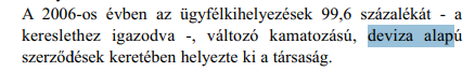 A bank felelősségét jól mutatja, a 2006-os pénzügyi beszámolójuk kiegészítő mellékletéből származó rész, amely leírja, hogy az erstés ügyfélkihelyezések 99,6 százalékát a devizahitelek tették ki ebben az évben.