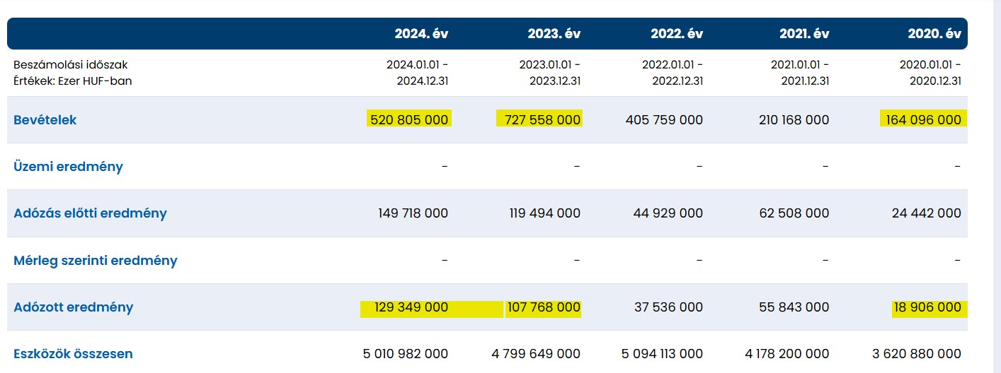 Az Erste hazai leányvállalata, az ERSTE BANK HUNGARY Zrt. 2021-ről 2023-ra több, mint háromszorosára növelte az árbevételét, 210-ről 727 miliárd forintra. De sokat elárul a bank virágzásáról az is, hogy még a 2024-es árbevétel-visszaesés ellenére is az elmúlt 5 évben konzekvensen növekedett a bank profitja, a 2020-as 18,9 milliárd forintról 129,3 milliárd forintra.