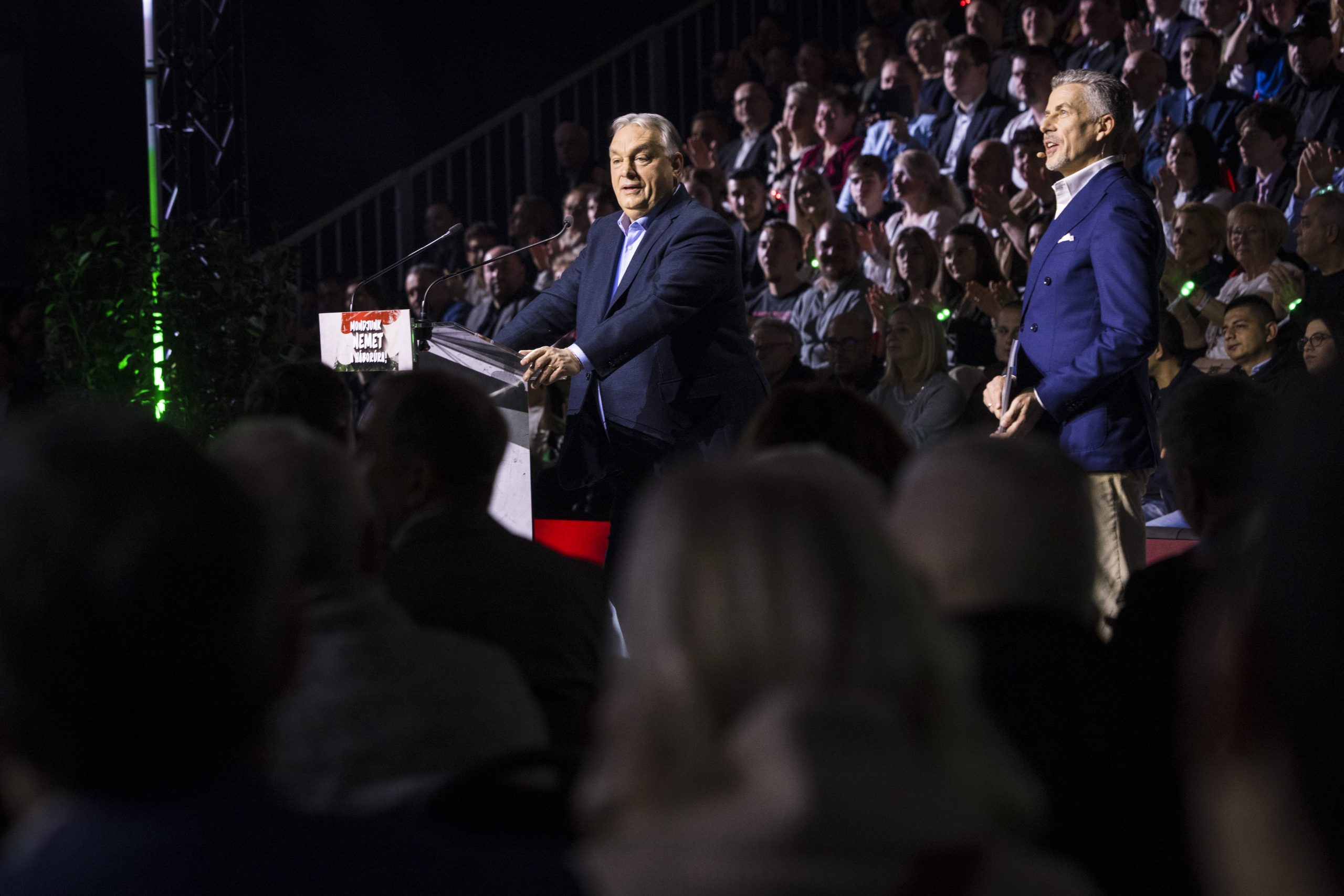 A Miniszterelnöki Kommunikációs Fõosztály által közreadott képen Orbán Viktor miniszterelnök beszédet mond a Digitális Polgári Körök által szervezett háborúellenes gyûlésen a szombathelyi a Haladás Sportkomplexumban 2026. február 7-én – MTI/Miniszterelnöki Kommunikációs Fõosztály/Kaiser Ákos