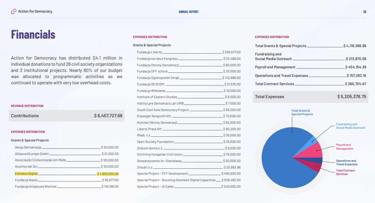 De két másik olyan lengyel civil szervezet is részt vett a csomag összeállításában, mint az Akcja Demokracja és a Komitet Obrony Demokracji, amelyeket az Action for Democracy finanszírozta a 2023-as kampányban.