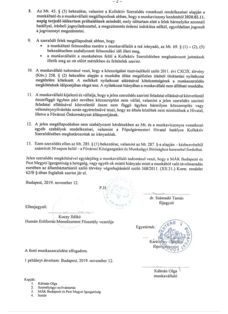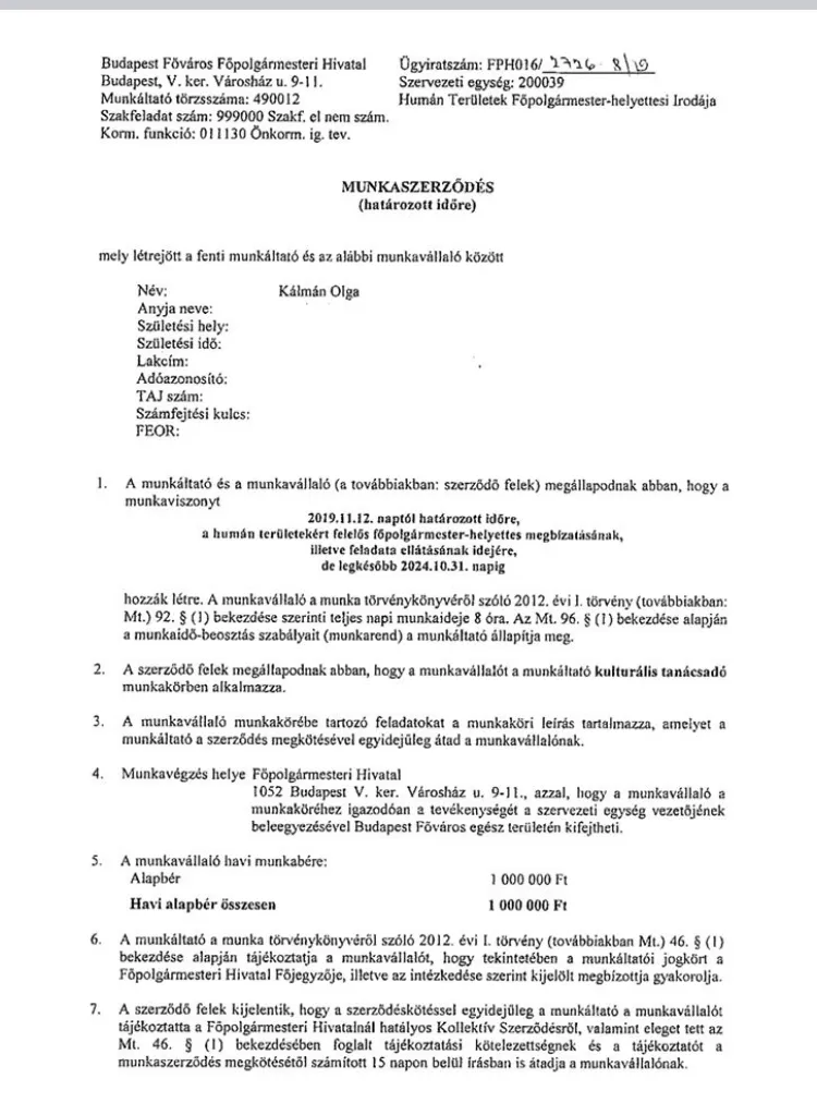 Közérdekű adatigénylés révén vált hozzáférhetővé Kálmán Olga szerződése, ami 5 éven át biztosítja számára a nem is akármilyen megélhetést. A magyar médiában ilyen zsoldot, hűségpénzt még senki sem kapott. Ha véletlenül az 5 év lejárta előtt távoznia kell, akkor is megkapja a 60 millió hátralévő részét, hiszen a szerződés szerint Karácsony Gergely 5 éves főpolgármesteri megbízatásának a végéig megilleti őt a busás juttatás.