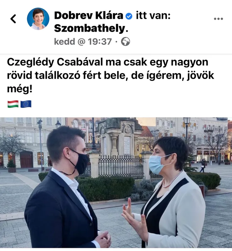 Valamint azt a való tényt, hogy dr. Czeglédy Csaba találkozott Dobrev Klárával, és azon való tényt, hogy Dobrev Klára ezt követően bejelentette, hogy elkapta a koronavírust, abban a hamis színben tüntettük fel, hogy dr. Czeglédy Csaba fertőzte meg Dobrev Klárát.