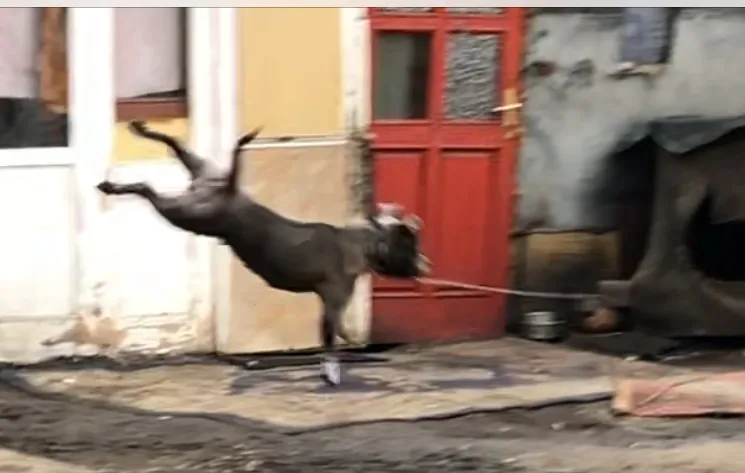 A vélhetően viadalokhoz tartott, de mindenképpen támadásra kiképzett kutyákat teljesen méltatlan körülmények között tartják: fél méteres láncra verve, étel és ivóvíz és megfelelő alvóhely nélkül, saját ürülékükben. Nem is kérdés, hogy a lánctól és kiképzéstől teljesen bevadult kutyák pillanatok alatt tépnének szét egy embert...