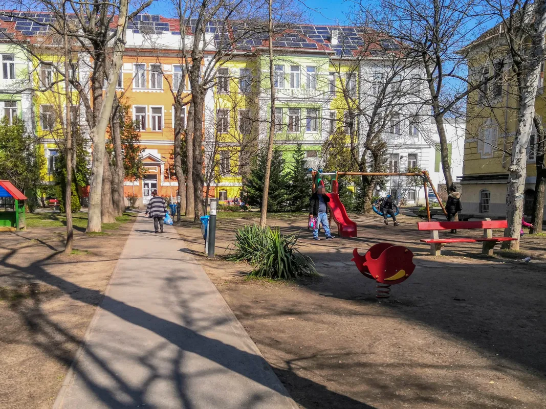 A Heim Pál Gyermekkórházban befelé igyekvő munkatársainkat nem állították meg, besétálhattunk az udvaron lévő játszótérig, ahová leengedik azokat a gyerekeket, akik gyógyulófélben vannak. Több apukával is beszéltünk, aki „tilosban járt” – így persze nevüket, arcukat nem adták –, és akiknek az volt a véleménye, hogy nem kell annyira félni a koronavírustól.