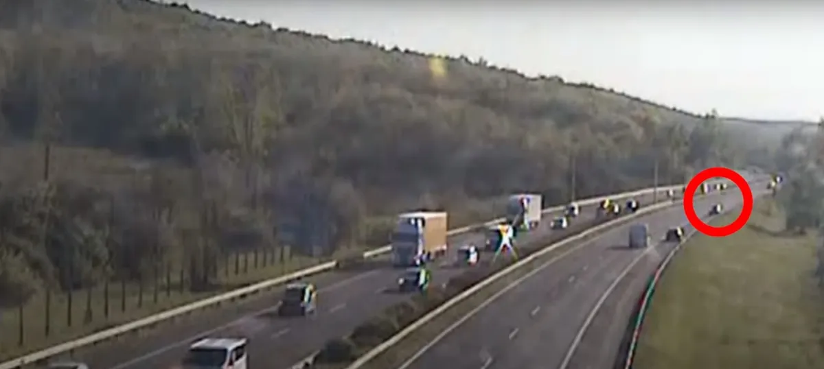 Szabálytalan haladása közben több elhaladó autóstól kapott reflektoros jelzést, valamint dudálást, de úgy gondolta, baj nélkül meg tudja oldani a feladatot. Arról nem volt tudomása, hogy ilyenkor a közútkezelő segítségét igénybe tudja venni, vagy ahogyan a mellékelt példa is mutatja, a rendőrség is hívható.