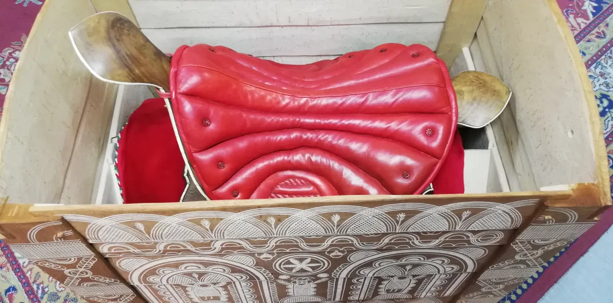 Egy úgynevezett tiszafüredi dísznyeregre esett a választás. Ezt a hagyományos magyar nyeregtípust, amelyet a magyar huszárság is évszázadokon keresztül használt a szakírók egyfajta összekötő kapocsnak tekintik a honfoglalás kori magyar lovaskultúra és a modern idők között.