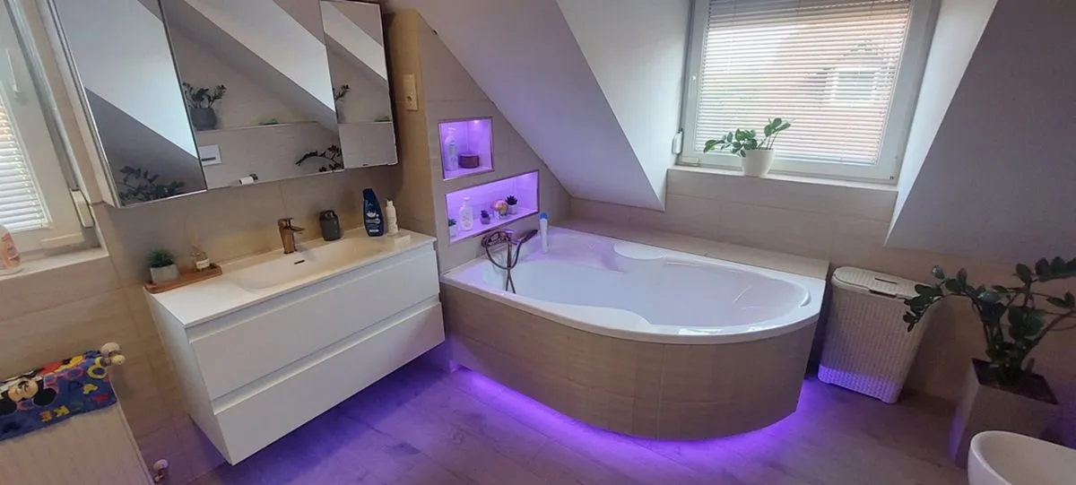 Kifejezhetetlen különbség van, amikor egy fürdőszoba terét színes led fény játékával árasztjuk el. Olyan csodás élményt ad, amit érdemes kipróbálni!