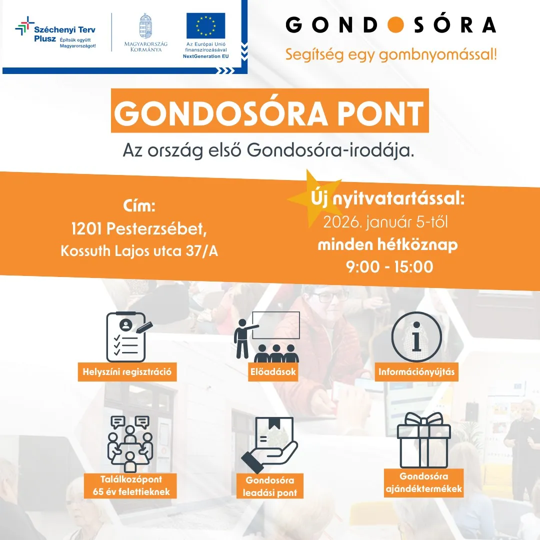 A Pesterzsébet szívében működő Gondosóra Pont az ország első Gondosóra-irodája, amely közösségi térként és információs pontként szolgál minden érdeklődő számára.