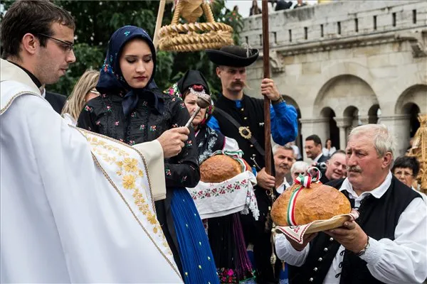 A több évszázados hagyományt felelevenítve a Mesterségek Ünnepén a mesterek díszes aratókoszorús felvonulással és kenyéráldással köszöntik ma Szent István ünnepét. A népviseletbe öltözött mesterek, zenészek és táncosok a budapesti Szent György térről indulnak 9 órakor a Szent István térre, ahol 9 óra 30 perckor ünnepélyes kenyéráldást tartanak.