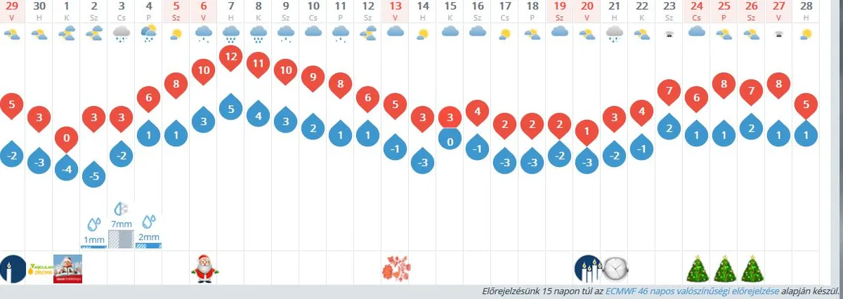 A 30 napos előrejelzések szerint idén sincs sok esély rá, hogy karácsony környékén havazzon. Sőt, ha minden igaz, szokatlanul „meleg” lesz az ünnep...