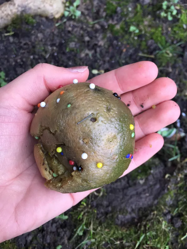 Ide hordja sétáltatni Ferdinándot, a családi kutyust Eleni Korani műkincsszakértő, az Ernst Galéria társtulajdonosa is. Ma reggel, amikor Ferdi boldogan vette birtokba a terepet, Eleni valami egészen döbbenetes dolgot látott meg a földön. „Először nem hittem a szememnek, azt hittem, rosszul látok. Aztán lehajoltam, hogy közelebbről is megnézzem azt a valamit. Ami nem volt más, mint egy gombostűkkel össze-visszaszurkált gyümölcs!