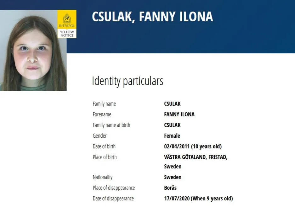 Az Interpol honlapján is látható a kislány kapcsán kiadott körözés, eltűntként keresi a rendőrség