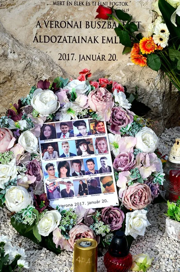 2017. január 20-án a budapesti Szinyei Merse Pál Gimnázium diákjai és tanárai éppen hazafelé tartottak az olaszországi sítúráról, amikor a veronai autópályán a jármű a szalagkorlátnak hajtott, majd egy hídpillérnek ütközött és lángba borult. A buszon a két sofőrrel együtt összesen 56-an utaztak. 18-an meghaltak, és sokan megsérültek. A tragédia idején a volán mögött az a V. János ült, akit várhatóan október végén szállítanak Olaszországba, hogy megkezdje a jogerősen kiszabott börtönbüntetése letöltését. A férfi felelősségét megpróbálta a balesetben ugyancsak elhalálozott váltótársára, és egyben jóbarátjára kenni, de végül megdőlt az állítása.
