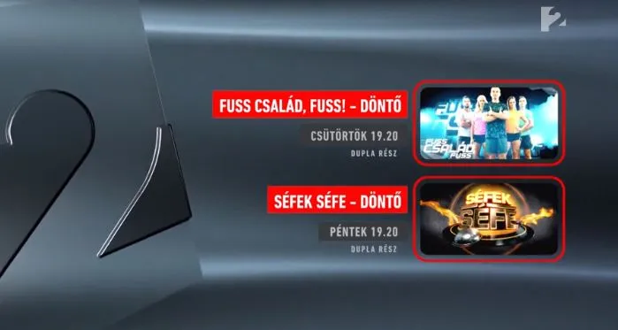 Végéhez közelít a TV2 két sikerműsora, a Fuss család, fuss! és a Séfek Séfe.